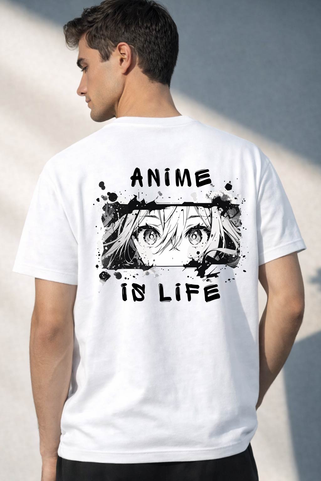 Anime severler için özel tasarım, sade ön yüz ve dikkat çekici arka baskı.
